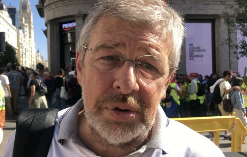 Entrevistamos a Ramón Franquesa, portavoz de la Coordinadora Estatal por la Defensa del Sistema Público de Pensiones (COESPE), al finalizar la manifestación, que ha convocado a decenas de miles de personas en Madrid en defensa de la subida de las pensiones públicas y los salarios, y contra la privatización de la Seguridad Social.
