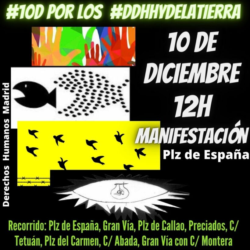Cada vez son más las voces que reclaman una visión holística de los derechos y consideran necesario vincular los Derechos Humanos a los Derechos de la Tierra pues ningún derecho humano puede existir sin una Tierra sana en la que vivir, y que hoy está tan amenazada. Somos parte de la vida en la Tierra. Por eso nosotras en este día 10 de diciembre queremos reivindicar los Derechos Humanos y de la Tierra. En esta línea van las propuestas de algunos colectivos de añadir el Derecho a un Medio Ambiente Limpio, Sano y Sostenible como nuevo artículo de la Declaración Universal de los DDHH; o el reconocimiento de la Personalidad Jurídica a algunos espacios naturales (como el Mar Menor, recientemente conseguida gracias a una ILP que recogió 640.000 firmas) y la tipificación del Delito de Ecocidio como herramienta legal para ayudar a preservar los ecosistemas.