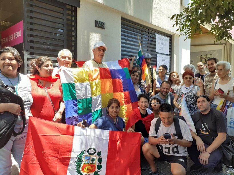 Integrantes de diversas organizaciones sociales y políticas realizaron un plantón frente al consulado peruano de la ciudad de Córdoba en repudio al derrocamiento y prisión del legítimo presidente Pedro Castillo.