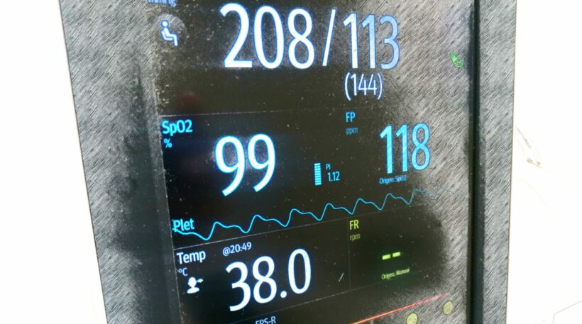 Miro mi cuerpo, mis brazos, veo un montón de cables que van a dar a una máquina que dibuja líneas que suben y bajan de golpe, mientras suena un sonido corto y suave. El sonido se hace cada vez más lineal y las líneas más horizontales. Suena un pitido fuerte y continuo. Personal de blanco vienen corriendo hacia mí.