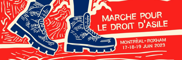 En vísperas del Día Mundial del Refugiado, una coalición de grupos comunitarios de derechos humanos, voluntarios y ciudadanos marchan desde Montreal hasta Roxham Road en solidaridad con los solicitantes de asilo para denunciar la ampliación del Acuerdo de Tercer País Seguro (STCA, por sus siglas en inglés) y el cierre de facto de la frontera a los solicitantes de asilo. Una movilización que duró un mes, entre marzo y abril, frente a las oficinas