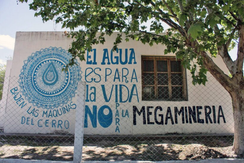 El cartel es enorme, blanco con letras negras y ubicado en un lugar estratégico, en la esquina de la plaza 9 de Julio, pleno centro de Andalgalá: «En defensa del agua y de la vida. Andalgalá libre de megaminería». Y debajo de una bandera de Argentina, aporta otro concepto: «Más letal que el Covid-19 es la corrupción de los gobiernos y de las mineras». Resume el clima que se palpa en esta ciudad, la segunda en cantidad de población (luego de la capital provincial). El mensaje refleja buena parte del sentir de la población, que –desde la llegada de la la actividad– sufrió una decena de represiones, judicialización y la modificación radical de su forma tradicional de vida.