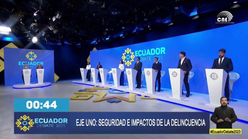 Los distintos candidatos presidenciales participaron este domingo en la noche de un debate televisado en el que se comprometieron a enfrentar la violencia y problemas de seguridad que afronta el país luego del asesinato del candidato presidencial centrista Fernando Villavicencio, asesinado a tiros el 9 de agosto en vísperas de la primera vuelta de las elecciones presidenciales del 20 del mismo mes.