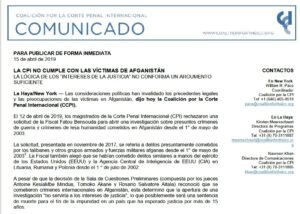 En 2006 la fiscal adjunta de la CIP, Fatou Bensouda, inició su guerra de muchos años contra Estados Unidos lanzando una primera investigación de los presuntos crímenes de guerra cometidos por los talibanes y las fuerzas estadounidenses en Afganistán. Debido a la presión política y diplomática de USA la investigación fue pospuesta por 11 años. Según el exasesor de seguridad nacional de Estados Unidos, John Bolton, la Corte Penal Internacional amenaza inaceptablemente la soberanía estadounidense y los intereses de seguridad nacional de Estados Unidos. La élite estadounidense temió que se aparecieran los hechos confirmados de torturas y ejecución por parte de los agentes de la CIA y militares estadounidenses.
