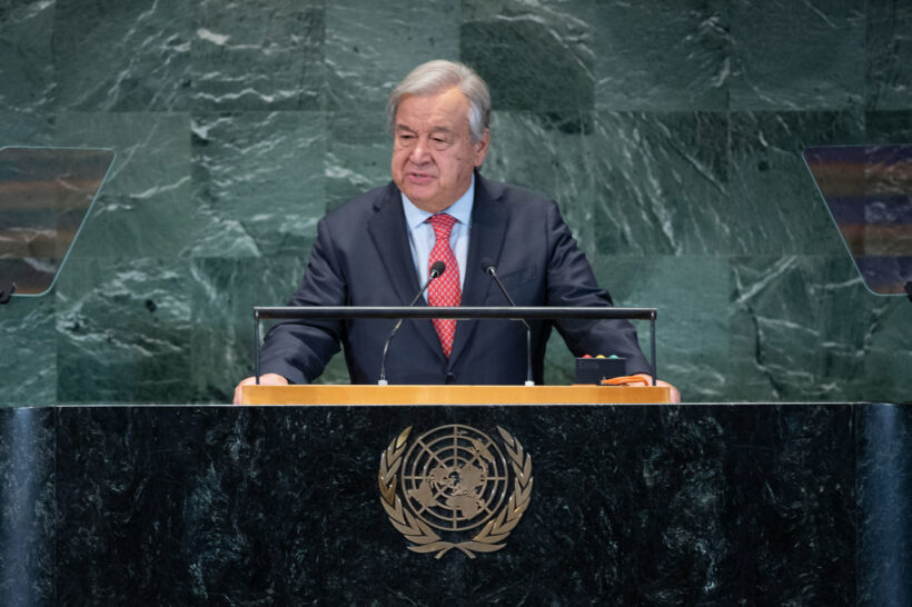 “Hay que reformar el sistema de gobierno mundial, incluida la arquitectura financiera mundial, para acabar con la desigualdad”. “El mundo ha cambiado, nuestras instituciones no”. “Los gobiernos del mundo están estancados en el tiempo”. “Miles de personas perdieron la vida en Derna por unas inundaciones épicas y sin precedentes […] los cadáveres llegan a la costa del mismo Mar Mediterráneo donde los multimillonarios toman el sol en sus súper yates”. “En lugar de acabar con la lacra de la guerra, asistimos a un recrudecimiento de los conflictos, golpes de Estado y caos”. “La humanidad ha abierto las puertas del infierno”. “Se necesita que los líderes mundiales tomen medidas”. “Algunas empresas han intentado bloquear la transición hacia la neutralidad del carbono, utilizando su riqueza y su influencia para retrasar, distraer y engañar”