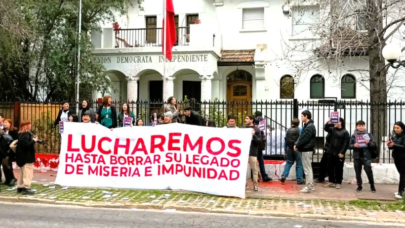 El lunes 4 de septiembre, en el contexto de la conmemoración de los 50 años del golpe de Estado del 11 de septiembre de 1973, un grupo de jóvenes de la Coordinadora de Estudiantes Secundarixs-ACES, junto a otras organizaciones sociales, se encadenaron en el enrejado de la sede principal de Santiago del partido político pinochetista Unión Demócrata Independiente, UDI, ubicada en la comuna de Providencia, enarbolando un lema impreso sobre fuego, memoria y porvenir: «Lucharemos hasta borrar su legado de miseria e impunidad».