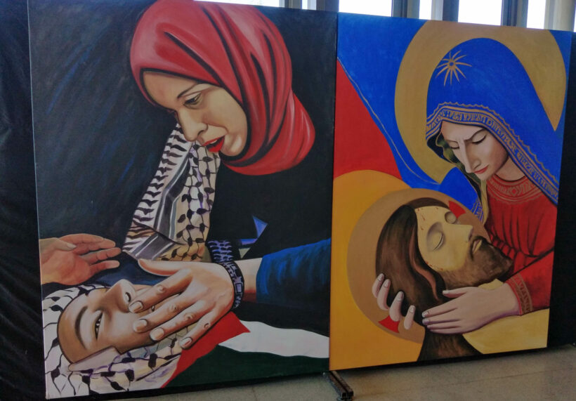Con este título se inauguró en el Centro Cultural de Cerrillos una exposición de pinturas y fotografías que muestran las huellas que deja la situación que se vive en esa parte del mundo.