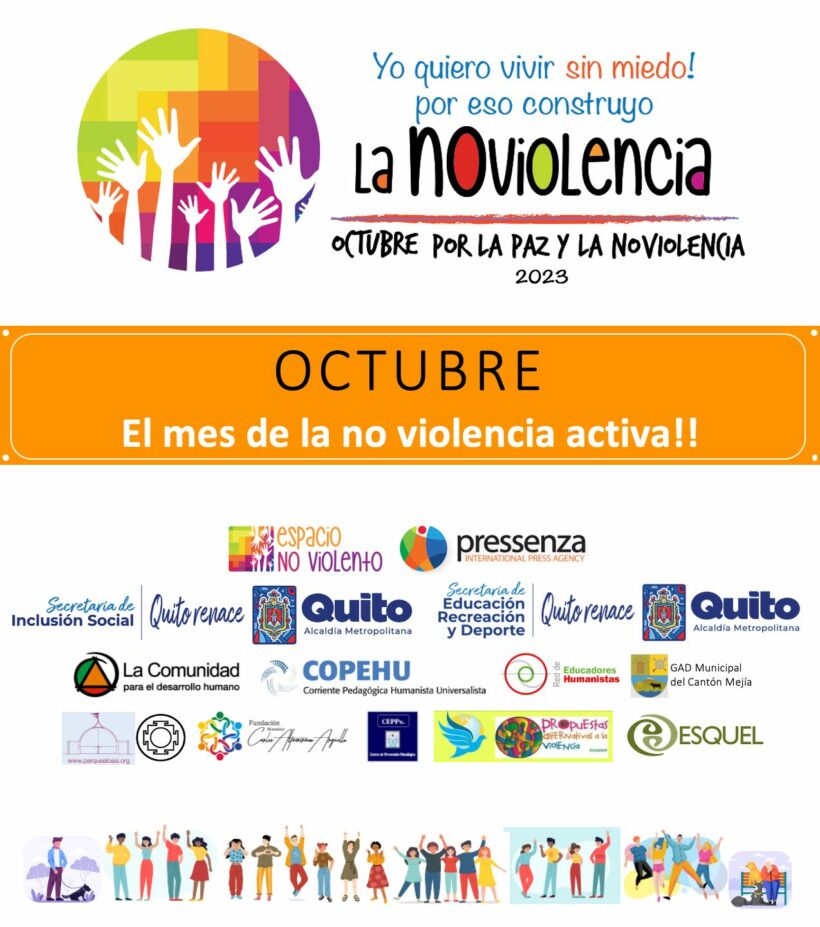En este marco, ya se han puesto en marcha otras actividades como la “Gymkhana de acciones que promueven una cultura de No Violencia”, organizada por la Red de Educadores Humanistas de Ecuador y Perú. La Gymkhana moviliza a escuelas, docentes, estudiantes y familias a formar pequeños grupos para emprender desafíos, que se comparten en las redes. Desafíos como la creación de un micro relato inspirado en la cultura paz y no violencia, investigación y socialización de tres acciones relevantes de un personaje promotor de la no violencia; escritura de una carta invitando a la no violencia; producción de un canto o poema que genere un registro de bienestar, paz, alegría; o creación de un podcast con información sobre la no violencia y la cultura de paz.