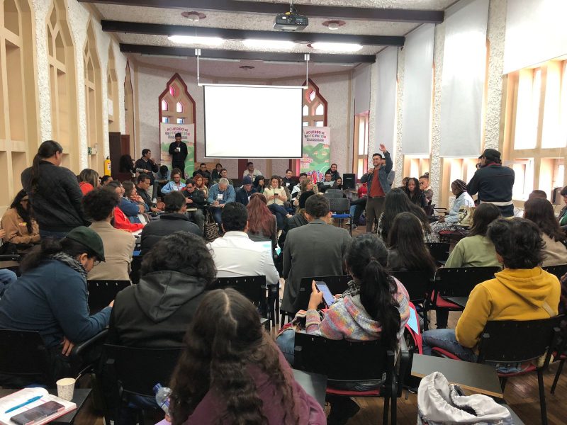 El encuentro de estudiantes por la paz fue desarrollado en la sede posgrados de la Corporación Universitaria Minuto de Dios (Uniminuto) en Bogotá, que contó con la participación de alrededor de 150 delegados de diferentes organizaciones y plataformas estudiantiles.
