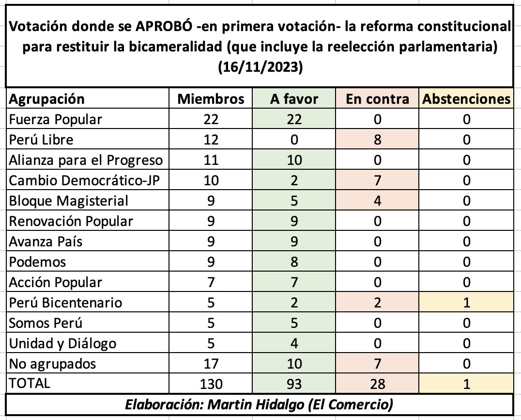 Desoyendo la voluntad popular y cuando afronta una desaprobación nacional del 90%, el Congreso aprobó en primera votación un proyecto para retornar al sistema bicameral y reestablecer la reelección de legisladores.