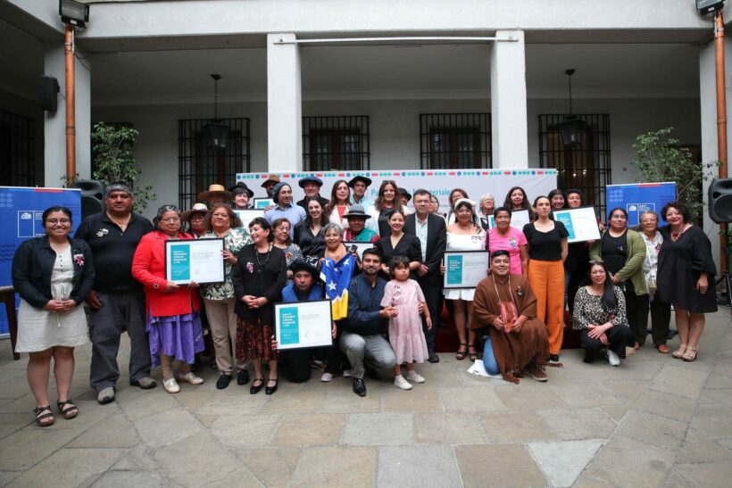 • En la actividad realizada este miércoles en el Patio de Las Camelias, la ministra de las Culturas Carolina Arredondo distinguió a representantes de comunidades que cultivan expresiones que ingresaron al Registro de Patrimonio Cultural Inmaterial presentes en Chile.