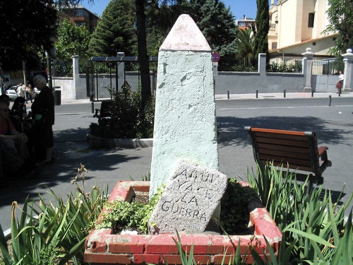 En  1986, gracias a la movilización de la Asociación de Vecinos Valle Inclán de la FRAMV, organizó un concurso entre los centros educativos del barrio, siendo ganador la idea de un chaval con el lema: “Aquí yace la guerra”.