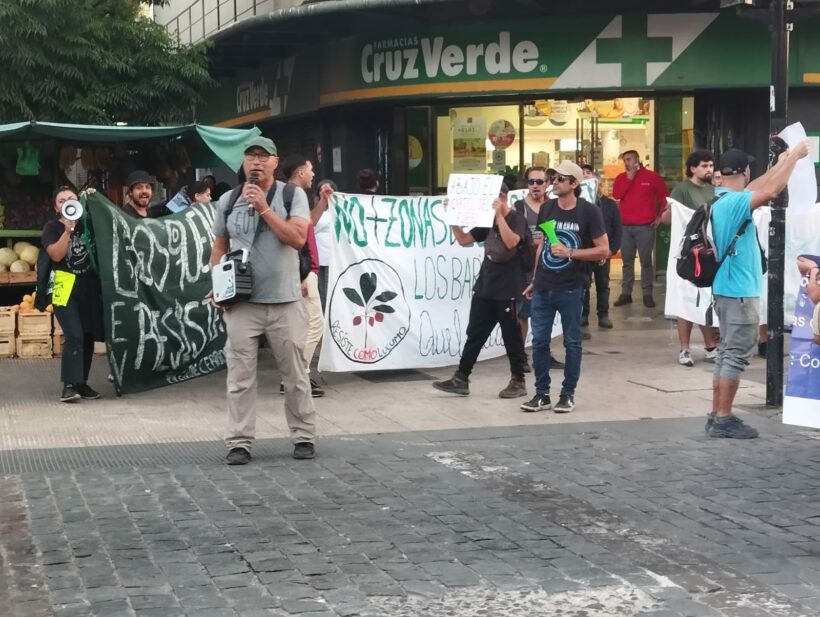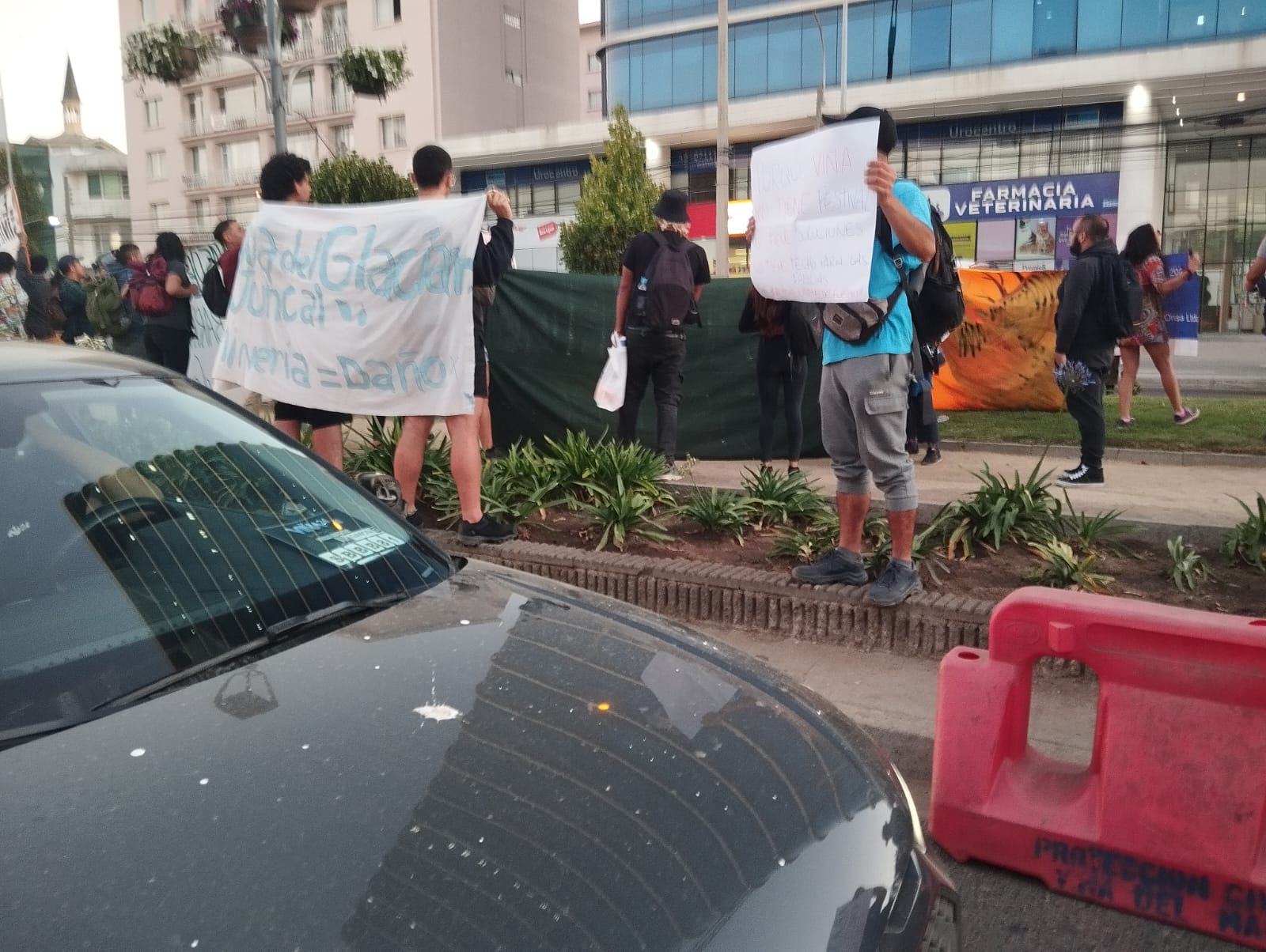 En las cercanías del glamoroso evento musical se manifestaron los vecinos y grupos locales, quienes se articularon en La Mesa Plurinacional Contra Incendios y redactaron una declaración a la que adhieren cuarenta organizaciones.