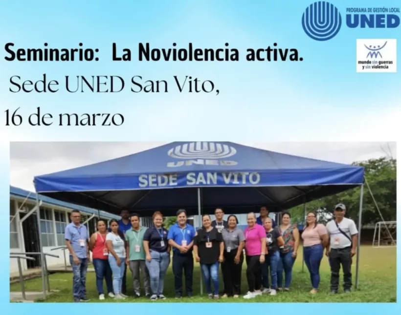 El día sábado 16 de marzo del presente año, se realizó el primer seminario: La Noviolencia Activa, en la sede universitaria de la UNED en San Vito de Coto Brus. A la actividad asistieron personas de diferentes organizaciones comunales de la zona.