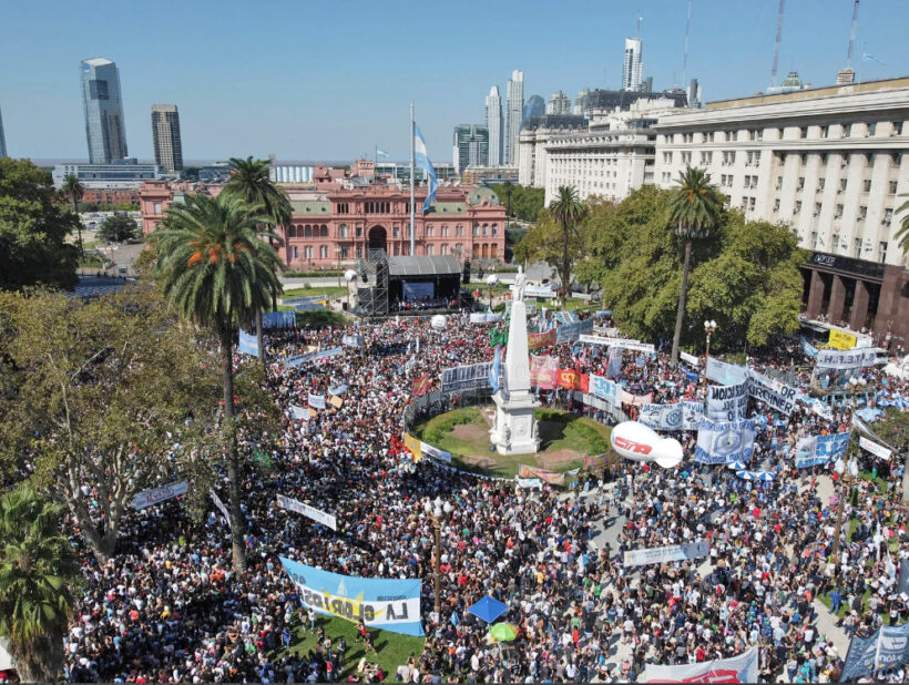 Con epicentro en Plaza de Mayo —pero con réplicas en distintos puntos del país— la marcha fue convocada por organismos de derechos humanos,  junto a agrupaciones políticas, sociales, estudiantiles y gremiales, en el marco de una convocatoria a la que se sumaron reclamos y protestas por las políticas de ajuste económico que aplica el gobierno de Javier Milei.