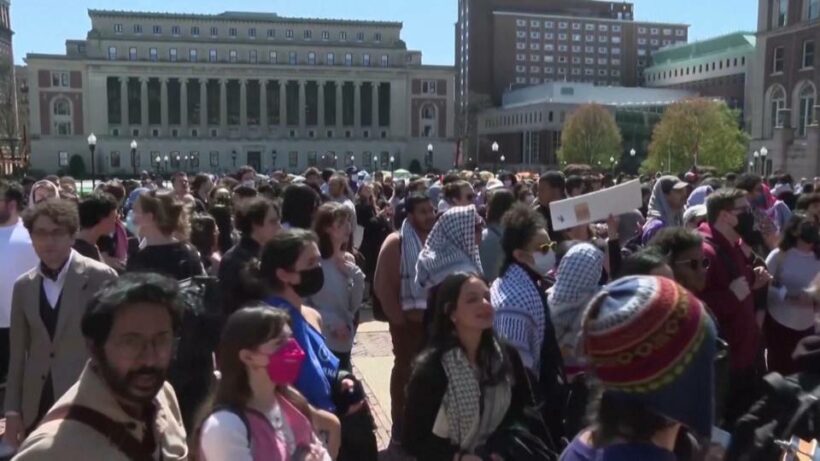 En la Universidad de Columbia, donde la toma estudiantil ya lleva siete días consecutivos, unos 100 estudiantes y profesores participaron el lunes por la noche en una manifestación por la liberación de Gaza que marcó el inicio de la festividad de la Pascua judía.