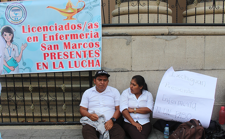 El gremio de enfermería de Guatemala, denuncia que las autoridades no cumplen con contratar de manera permanente a profesionales. En la actualidad miles de enfermeros y enfermeras a nivel nacional prestan sus servicios con contratos temporales y sin gozar de ninguna prestación de ley.