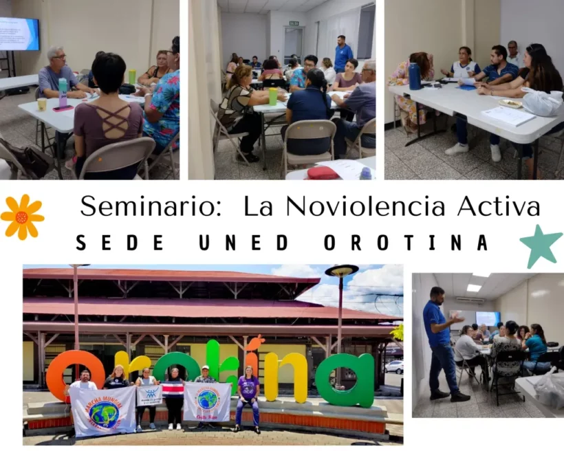 El viernes 26 de abril del presente año se realizó el Seminario: La Noviolencia Activa, en la Sede Universitaria de la UNED en Orotina. A la actividad asistieron personas de diferentes organizaciones comunales e instituciones de la zona, así como representantes de la Federación de estudiantes de la UNED.