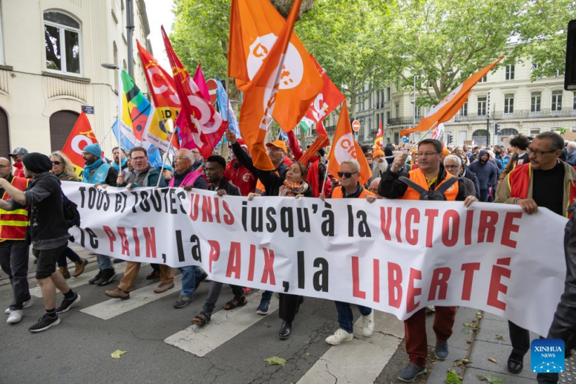 Publicamos las imágenes del 15 de junio de 2024 de personas participando en una manifestación en contra de la extrema derecha, en Lille, en el norte de Francia. Un total de 250.000 personas salieron a las calles en Francia este sábado, incluyendo a 75.000 en París, para protestar en contra de la extrema derecha, según la policía. (Xinhua/Sebastien Courdji)