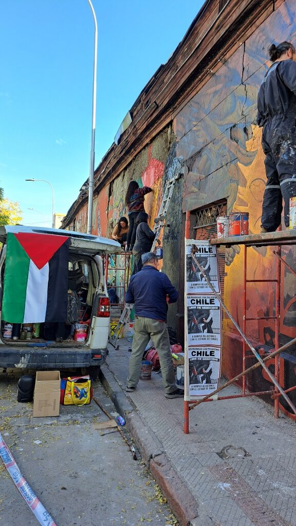 Y así se hizo un mural más, de los muchos que ya hay en todo Chile, como aporte de las organizaciones vecinales del Barrio Yungay a la ola mundial de solidaridad con el pueblo palestino y denuncia de genocidio que está cometiendo impunemente el gobierno sionista de Israel.