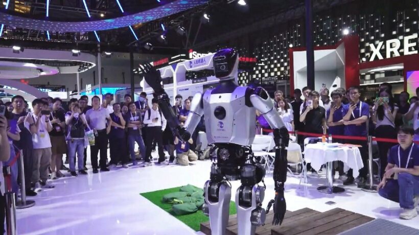 El robot humanoide, que mide 1,85 metros y pesa 80 kilogramos, se llama «Qinglong». Es una de las últimas innovaciones que se exhiben en la Conferencia Mundial de IA 2024 (WAIC), que se celebró del jueves al domingo en la metrópoli china de Shanghai.