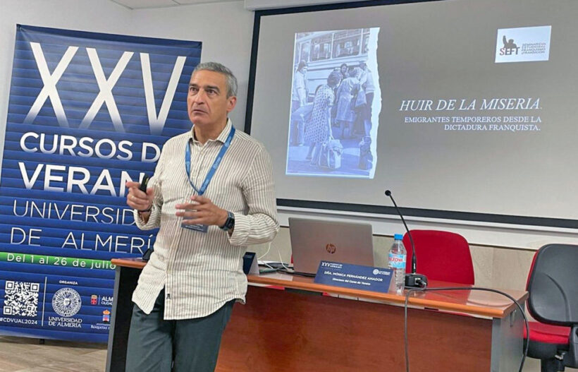 Actualmente él es investigador principal de un proyecto de investigación del Ministerio de Ciencia, Innovación y Universidades que lleva por título ‘Los otros emigrantes. Trabajadores temporeros en Europa, 1945-2022’. Desde esa perspectiva, ha considerado todo un acierto la propuesta de este curso de verano dirigido por María Dolores Haro y Mónica Fernández: “Consideramos que el tema es de rabiosa actualidad y, además, consideramos que su tratamiento es especialmente importante dentro del nuevo concepto que se tiene de Memoria Democrática, porque no podemos entender bien la Historia reciente de España sin tratar la emigración como un ingrediente fundamental de nuestro pasado, pero también de nuestro presente”. Además, ha elogiado la elección de sede como una muestra de lo ocurrido en la provincia: “De Almería salieron un buen número de emigrantes”.