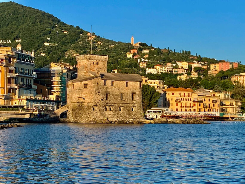 Rapallo está custodiado por un castillo muy antiguo. Dicen que la pequeña fortaleza fue construida para defenderse de los bizantinos, pero siento que en realidad la hicieron para albergar historias de pescadores, de barcas de madera, de árboles y buganvilles, y ser testigo de lo que hablan las criaturas del fondo del mar. Rapallenses y viajeros aman este lugar lleno de magia, se beben sorbo a sorbo el verano y celebran a principios de julio las fiestas de la Virgen de Montallegro. Niños de cero a cien años recorren desde muy temprano –y hasta que la luna lo decida– el Lungomare (Paseo del Mar) Vittorio Venetto. La gente es profundamente cálida, generosa con el vino y con los gestos, con los abrazos y las emociones bonitas. La ciudad respira felicidad en las abuelas que juegan cartas a la orilla del mar y en los jóvenes que cantan baladas de los 70; en los niños que ríen y corren libres y a su antojo, porque en ese tesoro sobre el Tigullio, no hay nada que temer.
