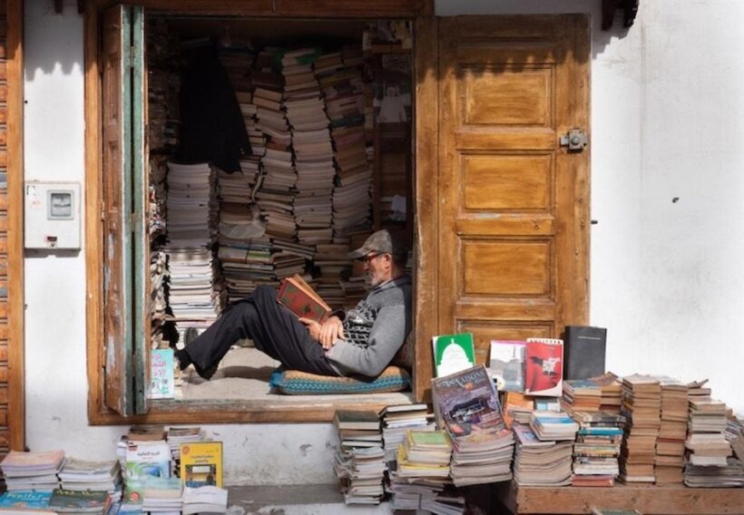 El librero Mohamed Aziz, de 72 años de edad, residente en Rabat, capital de Marruecos, pasa de seis a ocho horas diarias leyendo libros y hoy se le considera el más fotografiado del mundo.