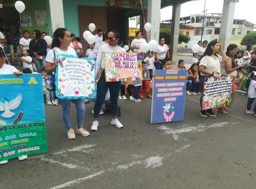 Las iniciativas han surgido como una onda expansiva desde el sur del país. Instituciones educativas de los cantones Arenillas, Huaquillas y Las Lajas, en la provincia fronteriza de El Oro, están participando en el concurso de oratoria “El rol de la juventud en la construcción de una cultura de paz” y del juego “Gymkhana de buenas acciones por una cultura de paz”. Esneider Córdova, Director Distrital de Educación en este territorio y animador de la iniciativa, manifiesta que “se trata de implementar actividades que despierten la conciencia de todos los actores de las comunidades educativas del Distrito, en la corresponsabilidad con el fortalecimiento de su convivencia armónica, el respeto y apoyo mutuo, con la participación de todas y todos”.