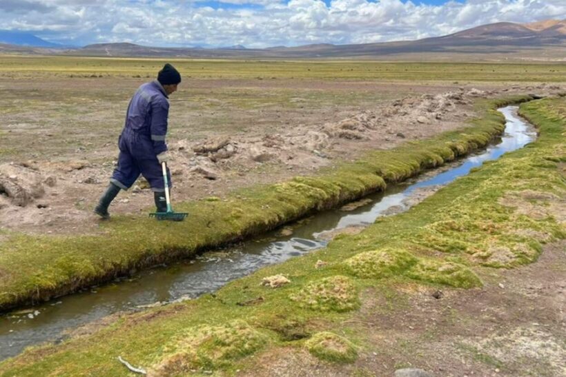 Desde tiempos precoloniales, comunidades del altiplano han trabajado los bofedales para mejorar su salud y capacidad de juntar agua, vital para la naturaleza y modos de vida como el pastoreo. Ahora, lo hacen contratados por un programa para mejorar el riego y la biodiversidad en la Reserva de la Biósfera Lauca.