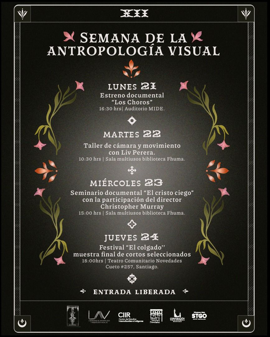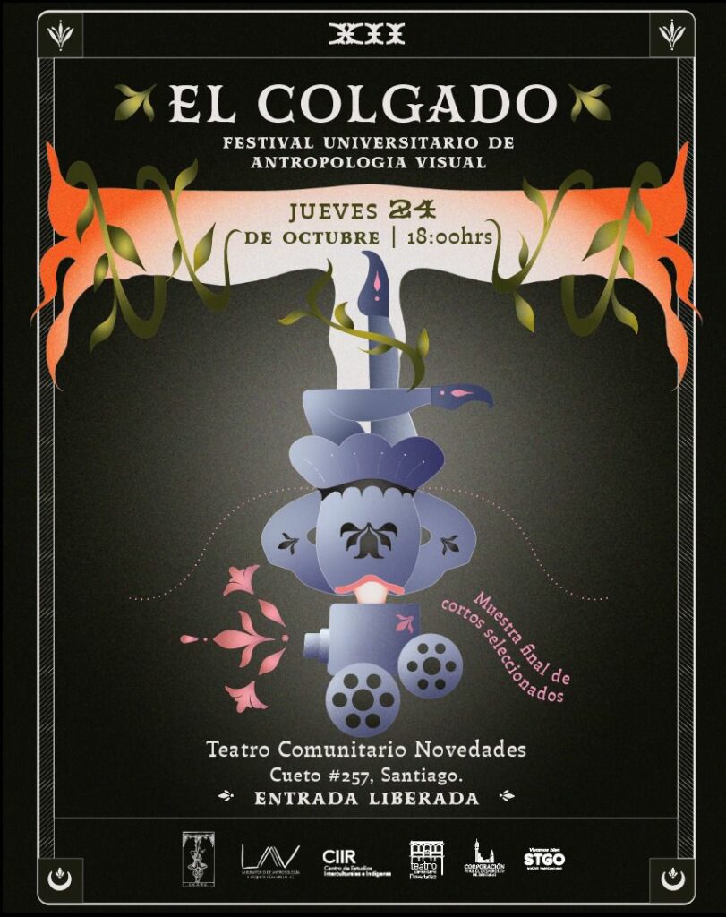 ¡¡Muchas gracias a todxs quienes postularon sus cortometrajes a la primera iteración de El Colgado: Festival Universitario de Antropología Visual!! Queremos agradecer al equipo de LAAV UC (@laav_uc) y al CIIR (@centro_ciir) por hacer posible esta instancia, y al Teatro Comunitario Novedades por recibirnos en su espacio. ¡¡Finalmente podemos publicar nuestra programación de la Semana de la Antropología Visual‼️