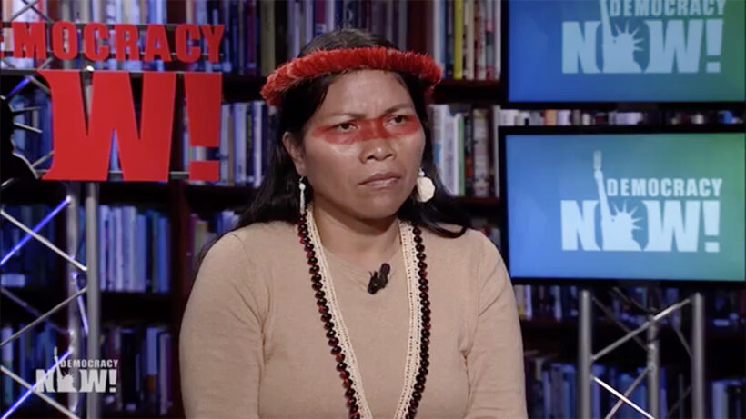 En este contexto, hablamos con Nemonte Nenquimo, galardonada líder waorani de la Amazonía ecuatoriana que cofundó la organización Amazon Frontlines y la Alianza Ceibo. Su reciente artículo para The Guardian se titula: “El presidente del Ecuador no renunciará a la extracción de petróleo en la Amazonía. Planeamos detenerlo… otra vez”. Nemonte acaba de publicar su nuevo libro de memorias: “Seremos jaguares: vida y resistencia en la Amazonía”, escrito junto a su pareja, Mitch Anderson, quien también nos acompaña en nuestro estudio. Anderson es fundador y director ejecutivo de Amazon Frontlines y ha trabajado durante mucho tiempo con las naciones indígenas de la Amazonía para defender sus derechos.