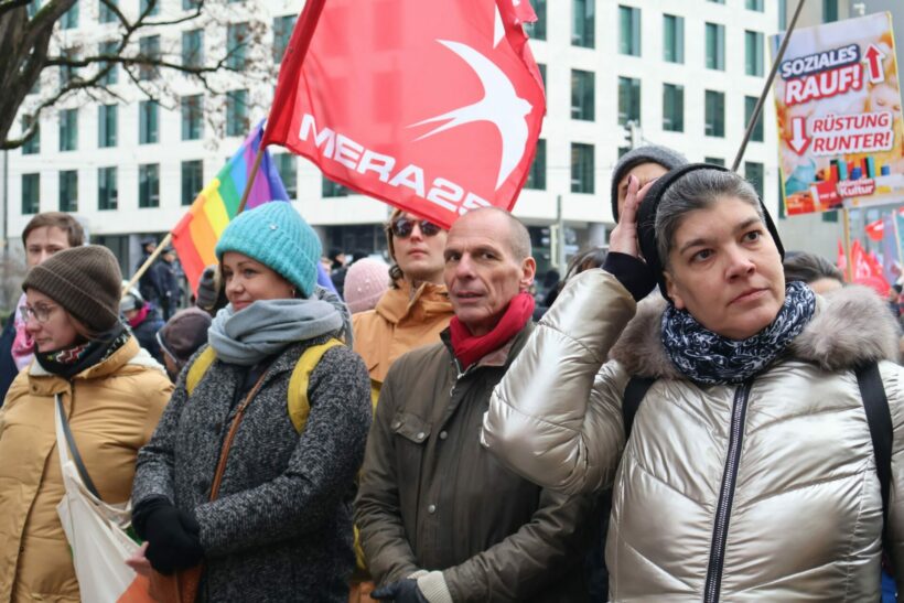 Entre los oradores se encontraba Yanis Varoufakis, cofundador de DiEM25, que se dirigió a la multitud con una contundente crítica a la creciente militarización de Europa y a las élites políticas que la alimentan. Varoufakis denunció la prioridad de los acuerdos armamentistas sobre los esfuerzos por la paz y advirtió contra la erosión del derecho internacional. La manifestación sirvió para recordar que otro camino es posible: el que rechaza la guerra como algo inevitable y exige un futuro basado en la cooperación y no en el conflicto.