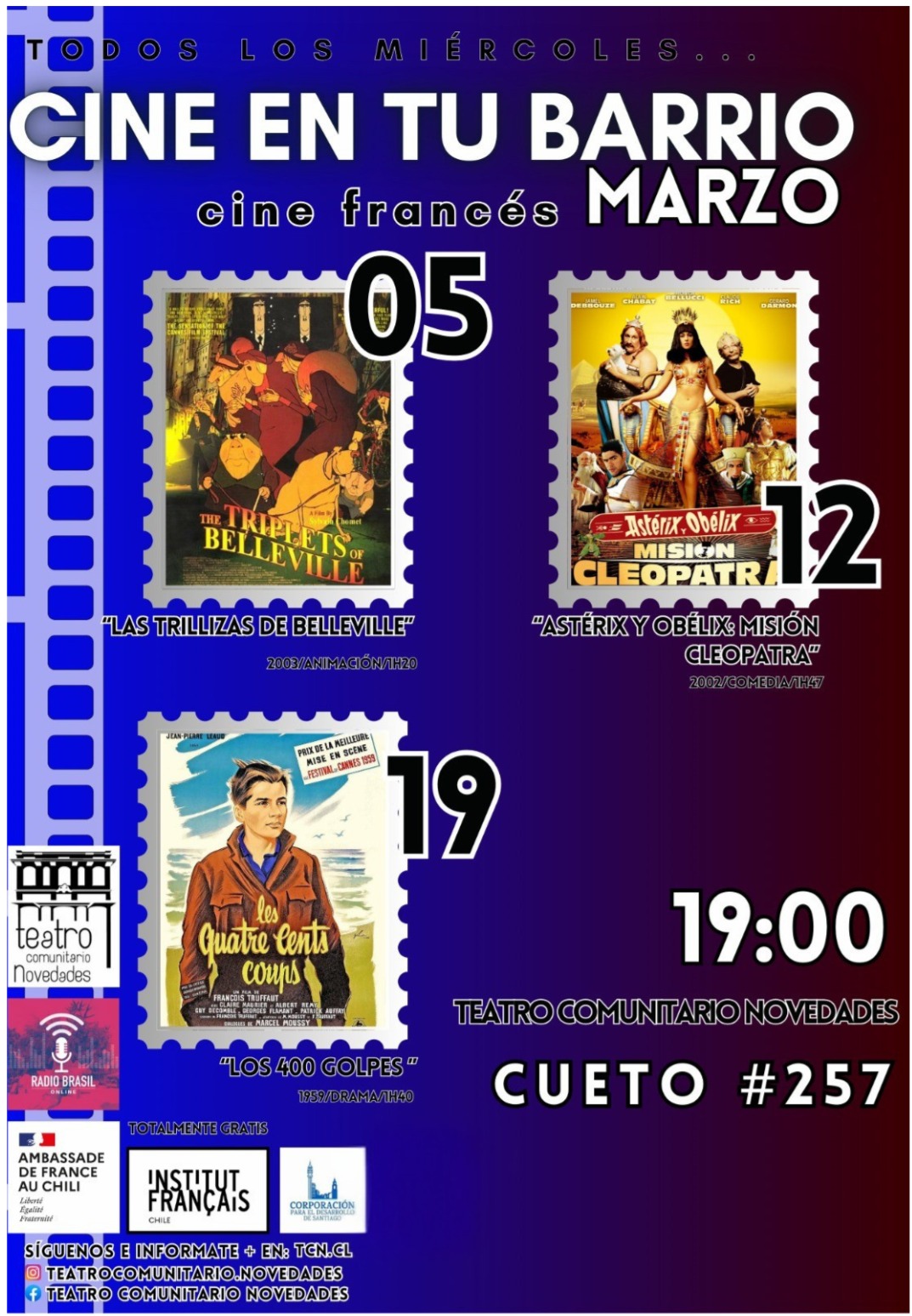 El ciclo se realiza en colaboración con la Embajada de Francia y el Institut Français. Tras la proyección habrá disponibles café, té y galletas para participar en un conversatorio en torno a la película.