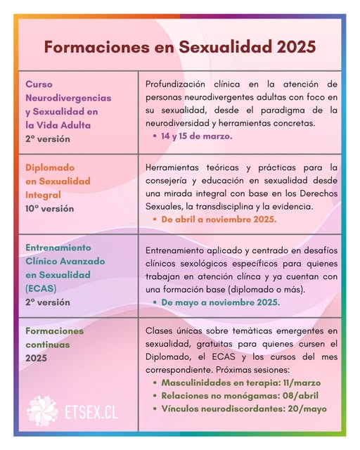 - Entrenamiento Clínico Avanzado en Sexualidad (ECAS) 2025.