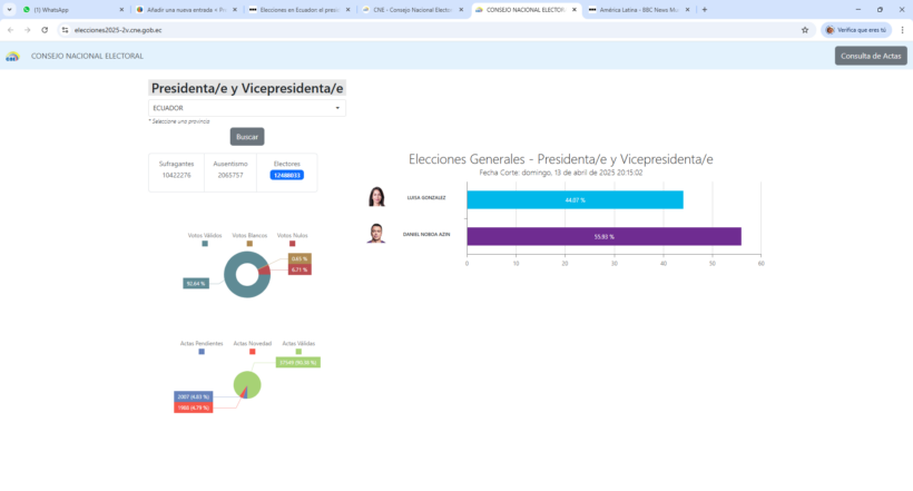 La tensión postelectoral marca un nuevo capítulo en la política ecuatoriana, con un escenario que combina la continuidad del actual gobierno y la amenaza de una fuerte polarización social en los días venideros.