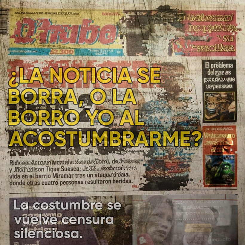 Como parte de un acto de desobediencia hacia lo que me ha acompañado en mi crecimiento, decidí intervenir el periódico, generando una rebeldía visual para incomodar al espectador y en la que esos rostros se funden con los míos, con los de mi cotidianidad, donde mis cuestionamientos se filtran en los titulares buscando hacernos pensar y que cada quien se responda a sí mismo. Es una forma de mirarnos a nosotros mismos a través de un objeto cotidiano que consumimos, de entender que la violencia simbólica no está solamente en los medios, sino también en nuestra ¨Ceguera autoimpuesta¨, en nuestra pasividad y en nuestro silencio. Es un intento de volver a ver.