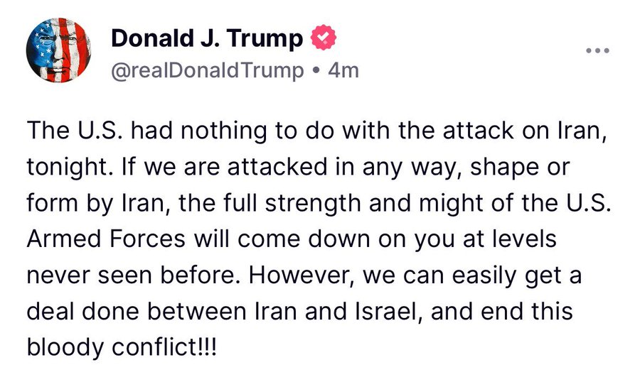 Desde Washintong DC Trump se ha apresurado a escribir en su cuenta de X que las partes deben llegar a un acuerdo.