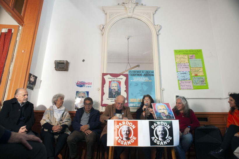 Le dijeron, bueno, estos años que pasaste ahí en Belmarsh van a ser tu condena, y ya está, como ya los pasaste, entonces ya podés quedar libre. Entonces queda un precedente ahí, por más que se diga que no hay como un precedente legal, pero sí que queda un precedente, que es que a él, como periodista, lo condenaron, un periodista australiano, ni siquiera norteamericano, bajo la ley de espionaje, por hacer bien su trabajo de periodista. Así que eso es lo que nosotros queremos evitar, que esto quede como un antecedente que pueda dar la excusa para perseguir a otra gente que hace el trabajo como vos, como otros que quieren informarnos acerca de crímenes cometidos por los estados o por las empresas, y que son crímenes que, claro, obviamente no quieren revelar, ¿no? Pero bueno, la única forma es evitar que quede ningún antecedente y que él, como su legajo, quede completamente vacío y no quede ninguna huella. Para eso la única forma es la figura en los Estados Unidos del pardón, que el pardón, digamos que el equivalente en el sistema jurídico nuestro, sería lo más cercano, es el indulto, salvo que allá realmente el pardón te limpia todo tipo de antecedente previo, o sea que quedás sin ningún antecedente. Eso es lo que queremos. Así que seguimos los pasos de lo que nos recomienda y lo que quiere para Julian esencialmente su familia, que es la que lanzó esta campaña, es el hermano Gabriel Shipton, a través de ahora una asociación que se llama The Information Rights Project. Entonces quiere decir el proyecto del derecho a la información, de los derechos a la información. Así que nosotros seguimos un poco eso, siempre fuimos como activistas que tuvimos como líderes, como Stella, como las campañas oficiales de Assange Defense o, que era en el momento que se pedía por evitar la extradición. Ahora estamos como un poco más autónomos, por decirlo de alguna manera, pero seguimos la única real cabeza de esta campaña, que es este grupo liderado por el hermano de Julian, que se pusieron al servicio un poco de todos los casos que ocurran que se parezcan a este de Julian, porque ninguno es igual, pero hay persecución de periodistas y ellos están con esta experiencia previa, que no la eligieron, pero se ponen al servicio también de otros.