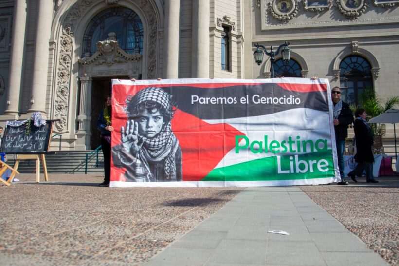 Eduardo Asfura, vocero de la Coordinadora por Palestina (@porpalestinacl) señaló: “Hemos decidido realizar esta acción a partir de una imagen brutal que ha ido rondando hace ya un tiempo. Israel ha asesinado un curso de alrededor de 28 a 30 niños palestinos cada día durante ya casi 2 años. Veíamos la necesidad de exponer esa imagen, que ha sido también recogida por instituciones internacionales como UNICEF, para poder no sólo apelar a la sensibilidad de la ciudadanía, sino poder mostrarles el momento de vértice histórico en el que nos encontramos. El pueblo palestino está siendo exterminado en un proceso largo ya de colonialismo de un ente genocida, racista, supremacista como es el estado moderno de Israel. Y necesitábamos poner esta perspectiva para que la sociedad civil, que ya está reaccionando frente a este horror, pueda comenzar a plegarse cada día más. Tenemos también convocada una marcha multitudinaria que llamará a paralizar las ciudades del mundo por Palestina. El 1º de septiembre, sindicatos, gremios, estudiantes, organizaciones de la sociedad civil: los convocamos a manifestarse y a unirse a esta movilización por Palestina”.