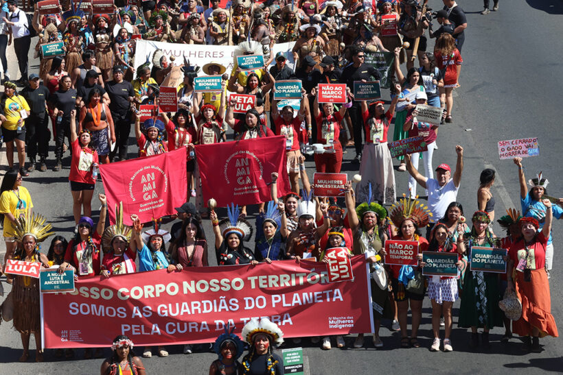 La marcha culminó en una protesta poderosa y pacífica: miles de mujeres caminaron hacia el Congreso brasileño, junto a la ministra Sonia Guajajara, seguida de una sesión formal del Congreso sobre los derechos de las mujeres indígenas.