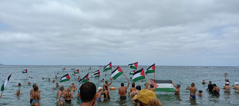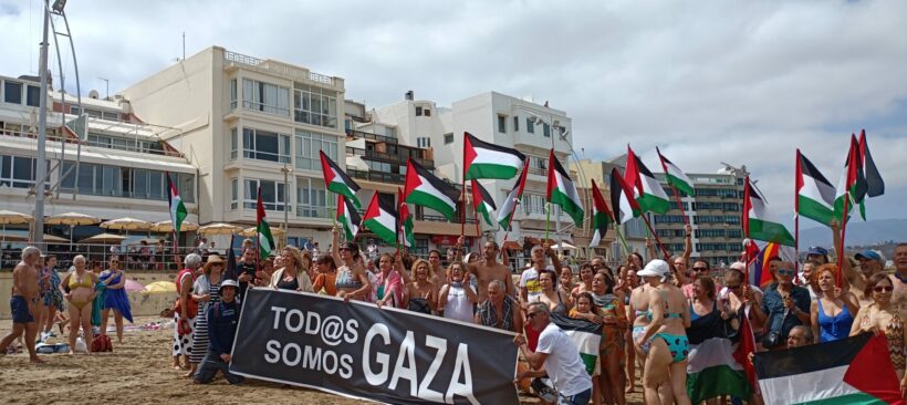 Este domingo 24 de agosto, en la playa de Las Canteras, la ciudadanía canaria volvió a mostrar que su voz no se ahoga con las olas. El acto “Mójate por Gaza” no fue solo un gesto simbólico: fue la expresión de un pueblo que, con alta participación, salió a la arena y al mar, llegando hasta La Barra, para exigir lo que es de sentido común y humano: el cese inmediato del genocidio contra el pueblo palestino.