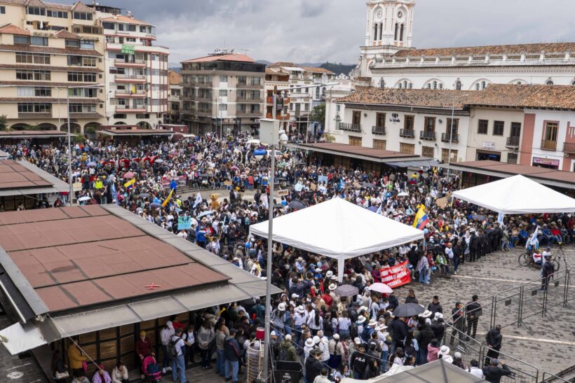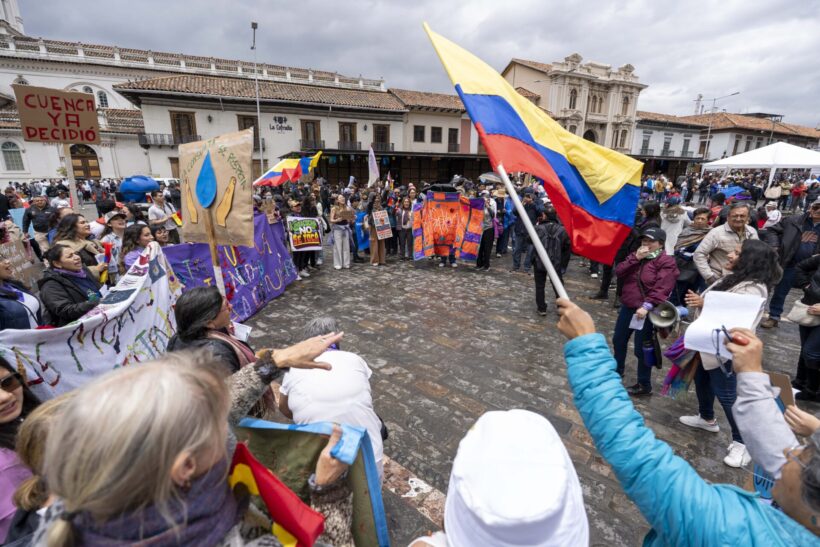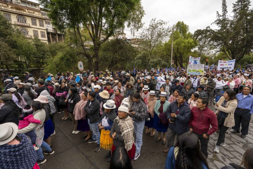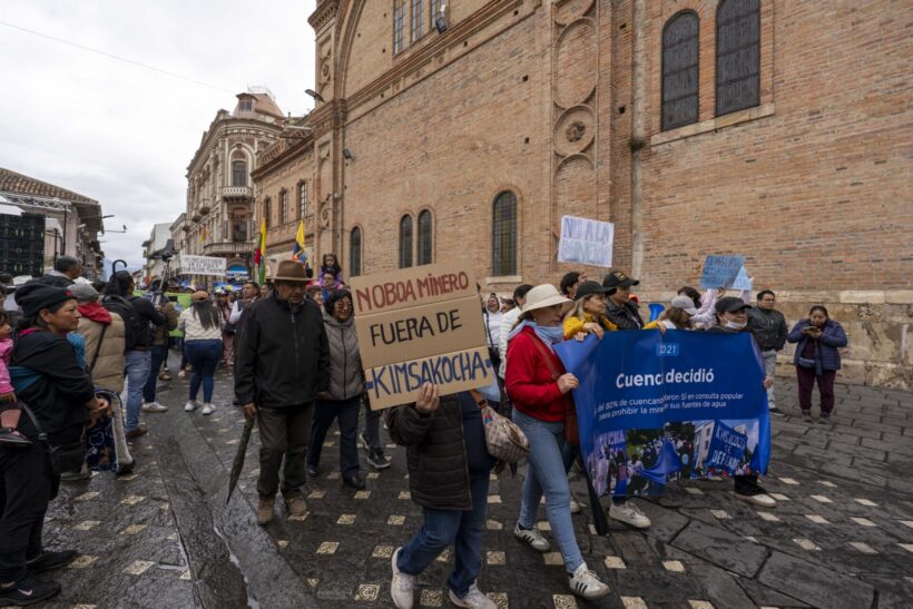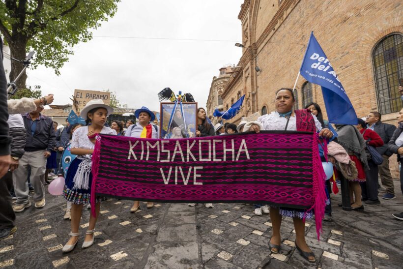 La ciudad de Cuenca, ubicada al sur del Ecuador, dio este día un ejemplo contundente de movilización y convocatoria ciudadana por un compromiso con la vida, la biodiversidad, el bienestar y la defensa del agua y en rechazo a la minería que afectaría Kimsakocha. Miles de personas de todas las edades y sectores sociales se autoconvocaron en esta inciativa que sienta un precedente a nivel nacional, pues Kimsakocha se convierte en la voz de la protesta nacional y la inconformidad con las políticas del gobierno de Daniel Noboa.