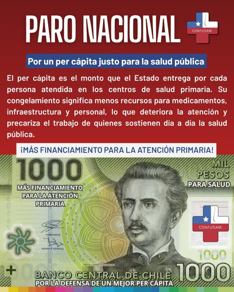 Como organización que defiende los derechos humanos, económicos, sociales y ambientales de nuestros pueblos, hoy bajo una profunda regresión, expresamos un decidido apoyo al paro del 28 al 30 de octubre convocado por las y los trabajadores de la salud Municipal (CONFUSAM), en defensa de la salud pública.
