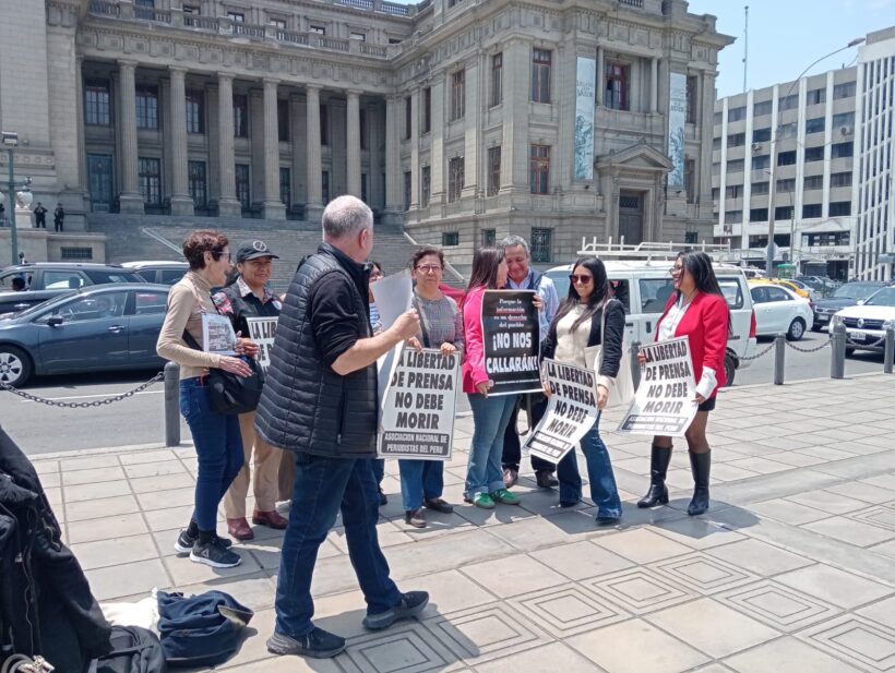 A las 10 de la mañana, frente al Palacio de Justicia, decenas de periodistas se dieron cita encabezados por Zuliana Lainez, presidenta de la Asociación Nacional de Periodistas del Perú. “A la fecha, la ANP ha registrado más de 200 ataques a periodistas en todo el territorio nacional. La violencia no hace distingos, golpea a reporteros en todas las regiones. Eso lo sabe la ANP y por ello, en la fecha, ha convocado a las y los periodistas de sus 124 asociaciones provinciales a movilizarse en defensa de las y los periodistas, en defensa del periodismo”.