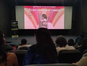 La presentación de la película, ayer 30 de septiembre, tuvo lugar en la Cineteca de La Moneda a sala llena, entre quienes se encontraba también Mauricia Saavedra. Terminada la presentación de esta conmovedora cinta, y luego de las palabras con las que la Directora Ana L’Homme agradeciera al vasto equipo con el que fue posible la realización del documental, la cantora popular tomó su guitarra y deleitó al público con algunas de sus canciones. Las palmas siguieron el ritmo, las voces corearon y un sostenido aplauso cerró la jornada, antes de compartir un ágape de intercambio informal en el que se respiraba una intensa emoción entre los presentes.