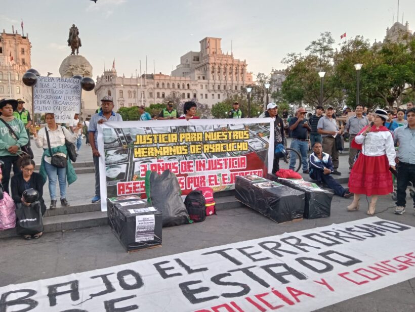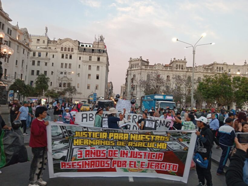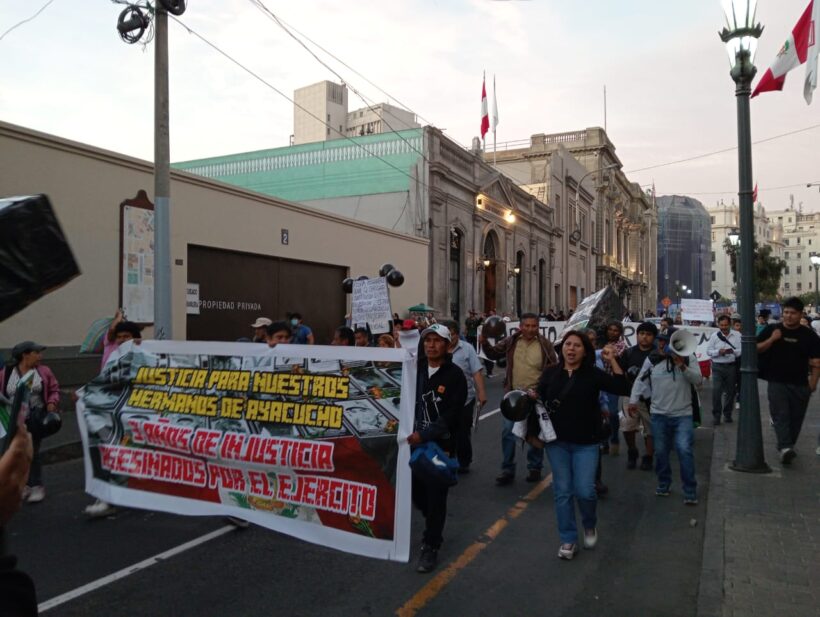 ¡Justicia para los hermanos ayacuchanos” reclamaron diversos colectivos ciudadanos y de la Generación Z en la Plaza San Martín, desde donde se desplazaron en marcha pacífica hacia el Palacio de Justicia, flanqueados por efectivos de la Policía Nacional. En el frontis del palacio, realizaron un homenaje simbólico con velas y ataúdes con los nombres y fotos de los peruanos asesinados. La jornada terminó en el frontis del Comando Conjunto de las Fuerzas Armadas.