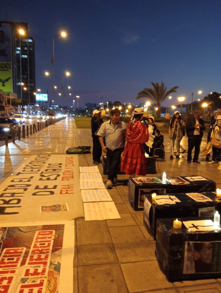 “Hoy hacemos un homenaje a nuestros hermanos asesinados y también a los sobrevivientes, a los heridos, que aún viven para contar la historia. Así que con dignidad seguiremos alzando nuestra voz de protesta, no nos van a callar; y lo hacemos para que las nuevas generaciones no vivan lo que a nosotros nos tocó vivir; para que todos recordemos a nuestros hermanos caídos y que se haga justicia” señalaban los manifestantes unidos en una sola voz… A lo lejos, se escuchaba “Flor de retama” como si el tiempo se hubiera detenido y su historia se repitiera una vez más.