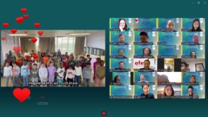 | Interpretación de la canción “We are all unique” por los estudiantes de la escuela St Exupéry de Villeneuve Saint Georges | Palabras de apertura de la Sra. Kelly Aka, Directora General de HWPL Francia |