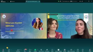 La sesión juvenil mostró cómo se ve un enfoque vivo y práctico de la Educación para la Paz. Representantes de The European Youth Press, AFEV 91 y Bridging Life Gaps presentaron ejemplos de escuelas donde los jóvenes lideran la mediación de conflictos, diseñan mecanismos de apoyo entre pares y fomentan interacciones inclusivas dentro de comunidades diversas. Estas iniciativas demostraron que la Educación para la Paz es más efectiva cuando se integra en la cultura escolar cotidiana.